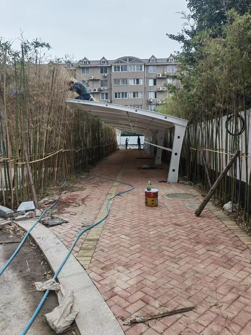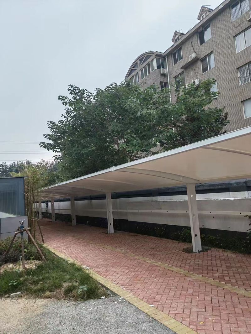 新鄉(xiāng)天安易居小區(qū)膜結(jié)構(gòu)車棚順利完工
